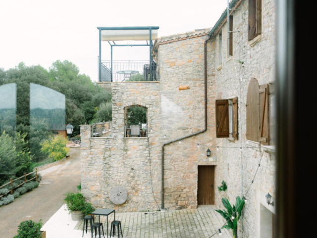 Masia i apartaments amb capacitat per a 41 persones, servei d’hosting, tipis opcionals i zona de piscina/barbacoa per al brunch de l’endemà del casament.
